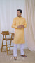 Light Yellow Geometric Kurta for Men – Lucknowi Work & Contrast Print | Wedding & Festive Wear